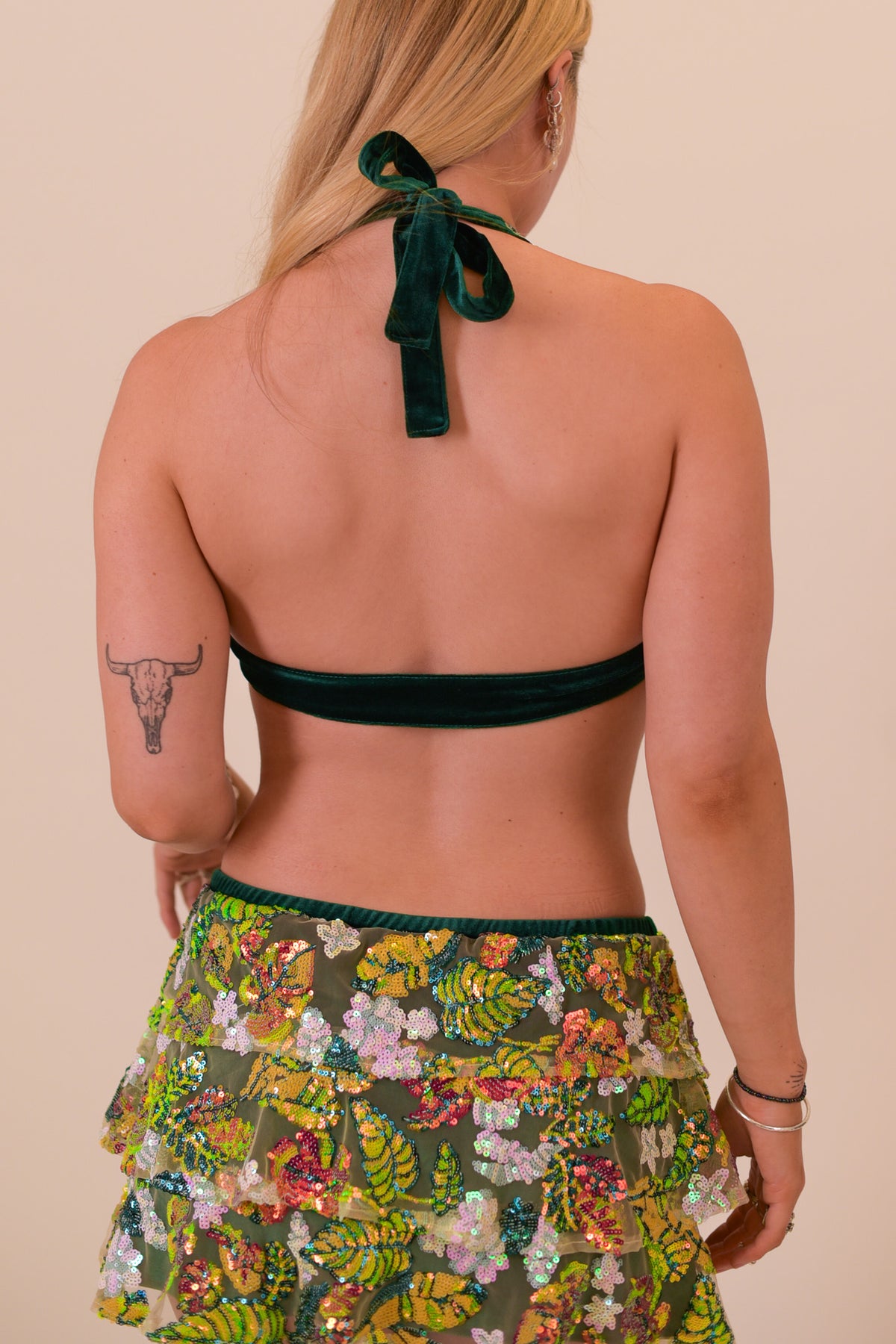 Complete your festival-ready wardrobe with the Ivy Sequin Halterneck Top—a dazzling piece designed to make you stand out at any event. This vibrant green sequin top catches the light with every move, ensuring all eyes are on you.